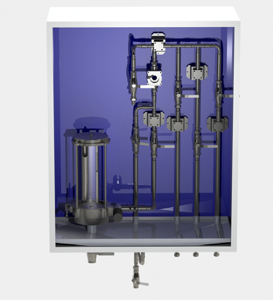 - сбор возможных проливов в закрытый поддон с дренажной линией;