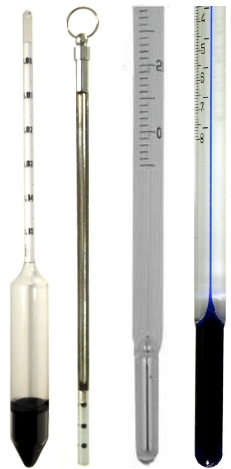 Для контроля плотности и температуры отбираемого продукта в системе используются гидрометры и термометры. Для их установки во внутренней крышке пробоотборного стакана имеются специальные карманы. В устройстве TAUBER используются модели гидрометров и спиртовых термометров, одобренные нефтяными компаниями и совместимые с рекомендациями JIG в области авиатопливообеспечения. К каждому устройству прилагается сертификат соответствия производителя. Спиртовые термометры абсолютно безопасны для персонала, экологически чисты, и с них гораздо легче снимать показания, чем с их ртутных эквивалентов. |