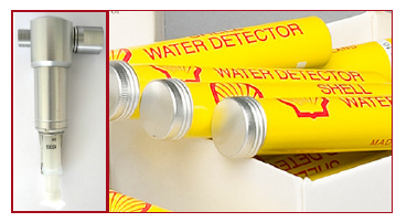 При необходимости проведения теста на наличие в образце топлива воды, необходимо предусмотреть внешний адаптер для детектора воды Shell, который устанавливается на клапане во впускном отверстии. Детектор воды Shell специально разработан для проведения тестов без открытия крышки пробоотборника, что исключает возможное загрязнение топлива. Устройство включает клапан, который открывается при установке специальной капсулы в полость детектора посредством шприца. Открывшись, клапан пропускает топливо в капсулу. При обнаружении воды в составе пробы топлива, содержимое окрашивается в яркий цвет. |